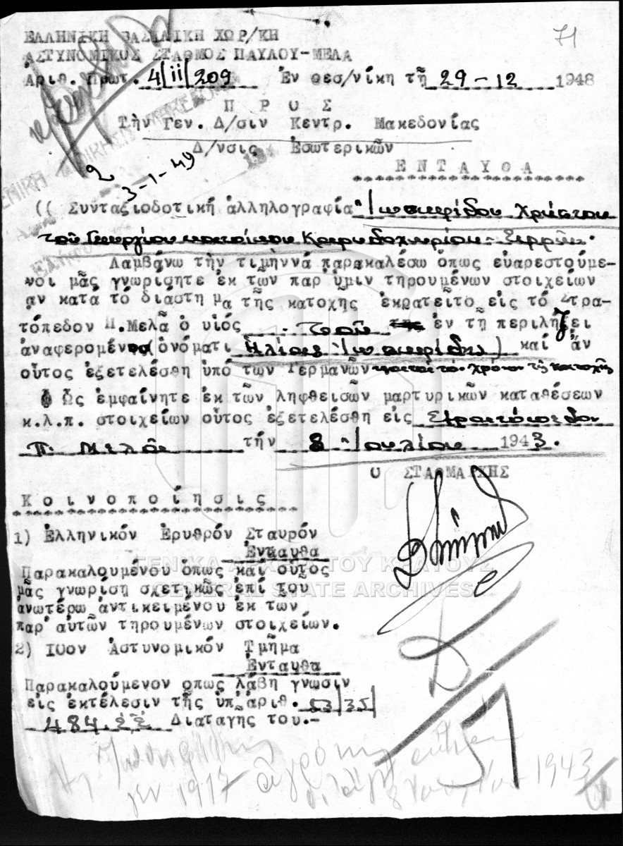 Item #001 - ΓΕΝΙΚΗ ΔΙΟΙΚΗΣΗ ΒΟΡΕΙΟΥ ΕΛΛΑΔΟΣ. Δ/51: ΠΕΡΙΘΑΛΨΗ ΣΕΙΣΜΟΠΑΘΩΝ, ΠΛΗΜΜΥΡΟΠΑΘΩΝ ΚΑΙ ΑΝΑΞΙΟΠΑΘΟΥΝΤΩΝ ΕΝ ΓΕΝΕΙ  [1945-1949]