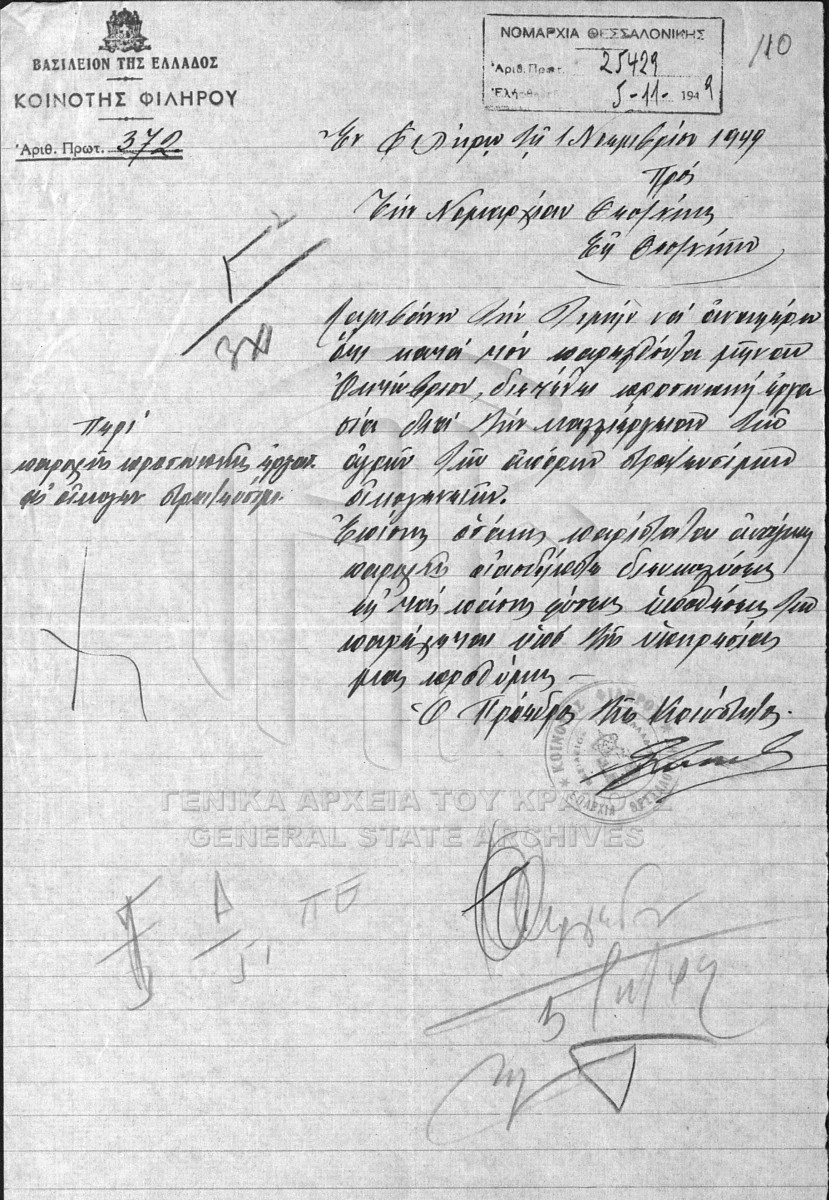 Pièce #001 - ΓΕΝΙΚΗ ΔΙΟΙΚΗΣΗ ΒΟΡΕΙΟΥ ΕΛΛΑΔΟΣ. Δ/51: ΠΕΡΙΘΑΛΨΗ ΣΕΙΣΜΟΠΑΘΩΝ, ΠΛΗΜΜΥΡΟΠΑΘΩΝ ΚΑΙ ΑΝΑΞΙΟΠΑΘΟΥΝΤΩΝ ΕΝ ΓΕΝΕΙ  [1948-1950]