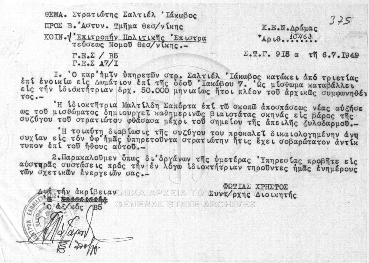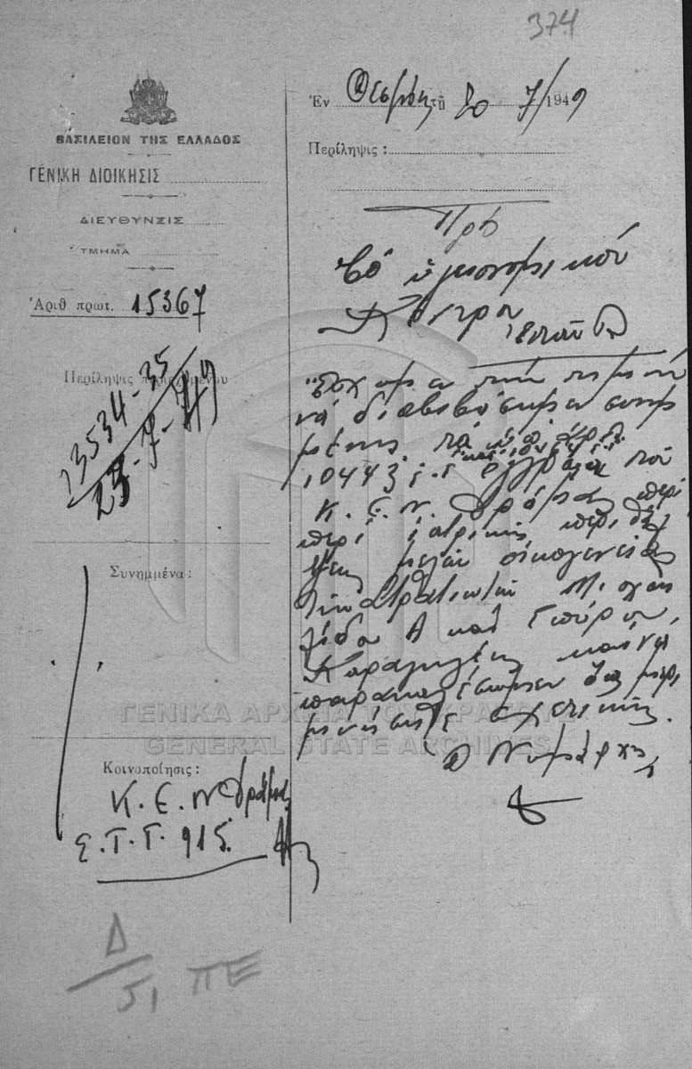 Item #001 - ΓΕΝΙΚΗ ΔΙΟΙΚΗΣΗ ΒΟΡΕΙΟΥ ΕΛΛΑΔΟΣ. Δ/51: ΠΕΡΙΘΑΛΨΗ ΣΕΙΣΜΟΠΑΘΩΝ, ΠΛΗΜΜΥΡΟΠΑΘΩΝ ΚΑΙ ΑΝΑΞΙΟΠΑΘΟΥΝΤΩΝ ΕΝ ΓΕΝΕΙ  [1948-1950]