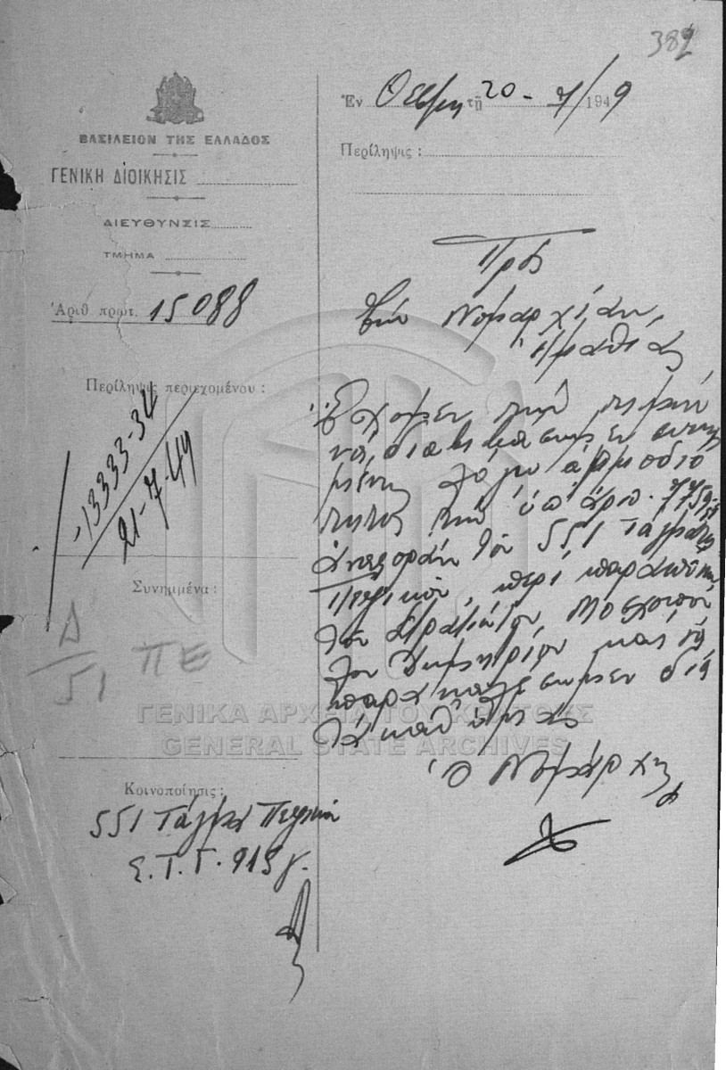 Τεκμήριο #001 - ΓΕΝΙΚΗ ΔΙΟΙΚΗΣΗ ΒΟΡΕΙΟΥ ΕΛΛΑΔΟΣ. Δ/51: ΠΕΡΙΘΑΛΨΗ ΣΕΙΣΜΟΠΑΘΩΝ, ΠΛΗΜΜΥΡΟΠΑΘΩΝ ΚΑΙ ΑΝΑΞΙΟΠΑΘΟΥΝΤΩΝ ΕΝ ΓΕΝΕΙ  [1948-1950]