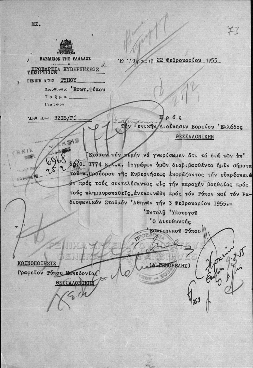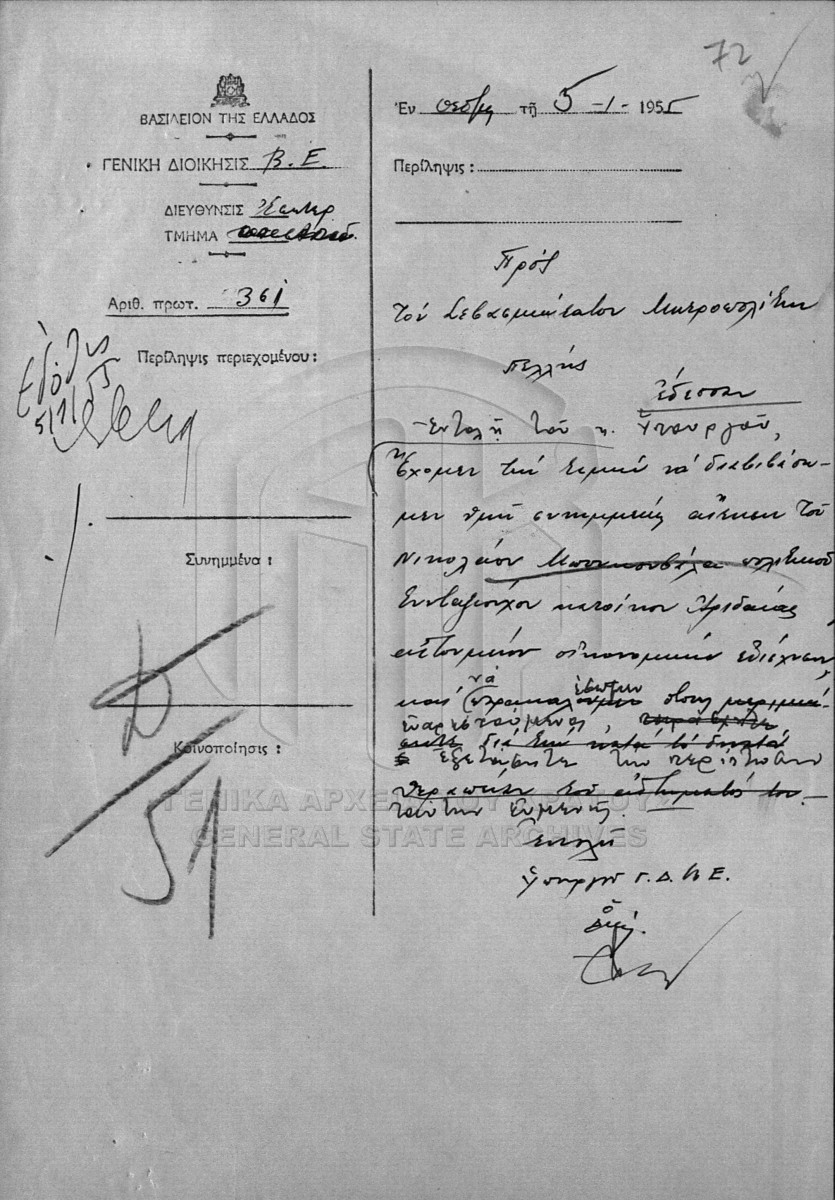 Τεκμήριο #001 - ΓΕΝΙΚΗ ΔΙΟΙΚΗΣΗ ΒΟΡΕΙΟΥ ΕΛΛΑΔΟΣ. Δ/51: ΠΕΡΙΘΑΛΨΗ ΣΕΙΣΜΟΠΑΘΩΝ, ΠΛΗΜΜΥΡΟΠΑΘΩΝ ΚΑΙ ΑΝΑΞΙΟΠΑΘΟΥΝΤΩΝ ΕΝ ΓΕΝΕΙ  [1954-1957]