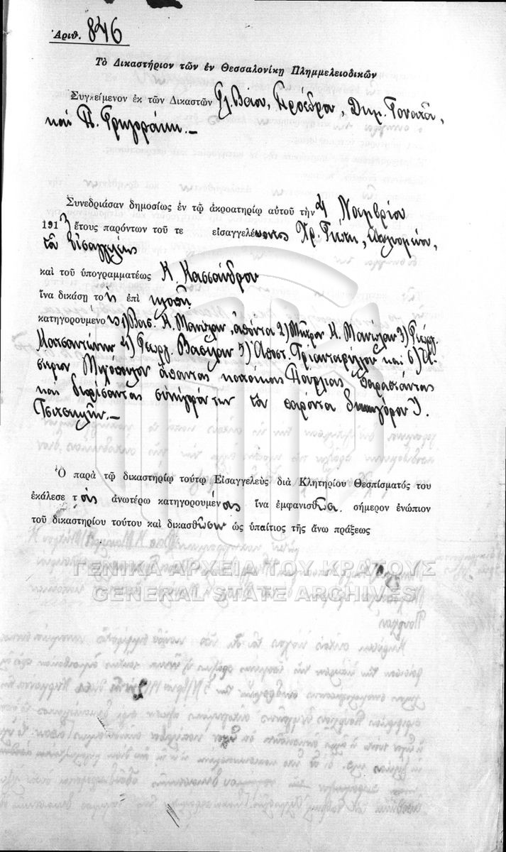 ΠΡΩΤΟΔΙΚΕΙΟ ΘΕΣΣΑΛΟΝΙΚΗΣ  [1912 - 1917]