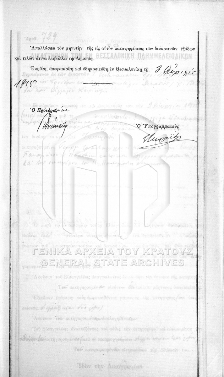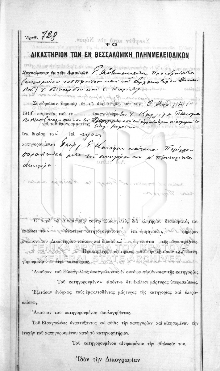 ΠΡΩΤΟΔΙΚΕΙΟ ΘΕΣΣΑΛΟΝΙΚΗΣ  [1912 - 1917]