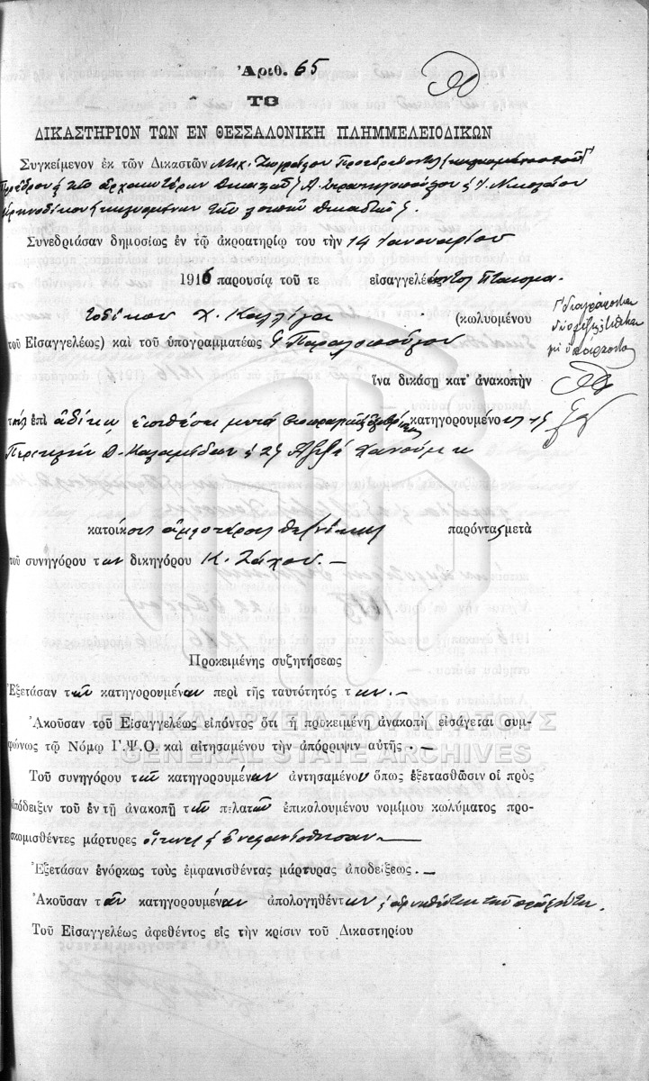 THESSALONIKI COURT OF FIRST INSTANCE - THESSALONIKI COURT OF FIRST INSTANCE  [1912 - 1917]