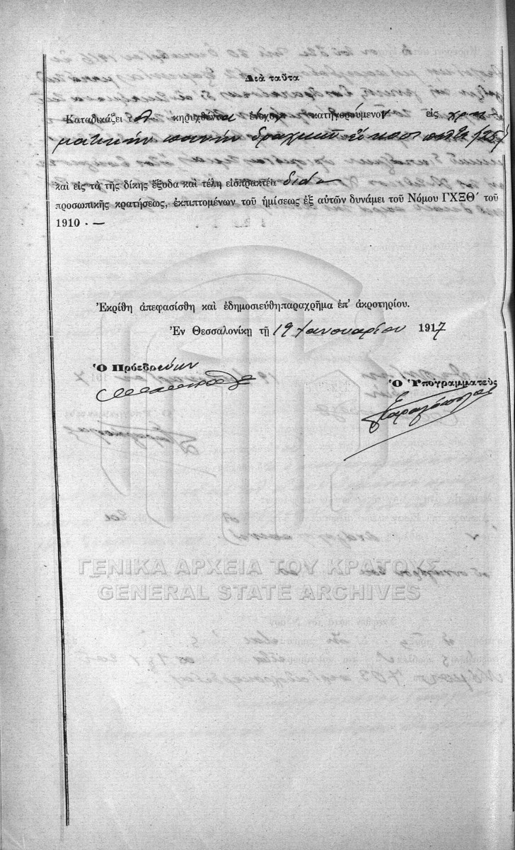 File #2685 - THESSALONIKI COURT OF FIRST INSTANCE  [10 Ιανουαρίου 1917 - 17 Φεβρουαρίου 1917]