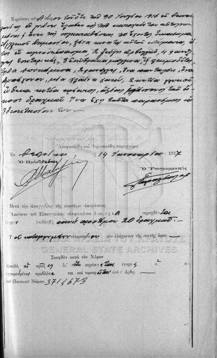 File #2685 - THESSALONIKI COURT OF FIRST INSTANCE  [10 Ιανουαρίου 1917 - 17 Φεβρουαρίου 1917]