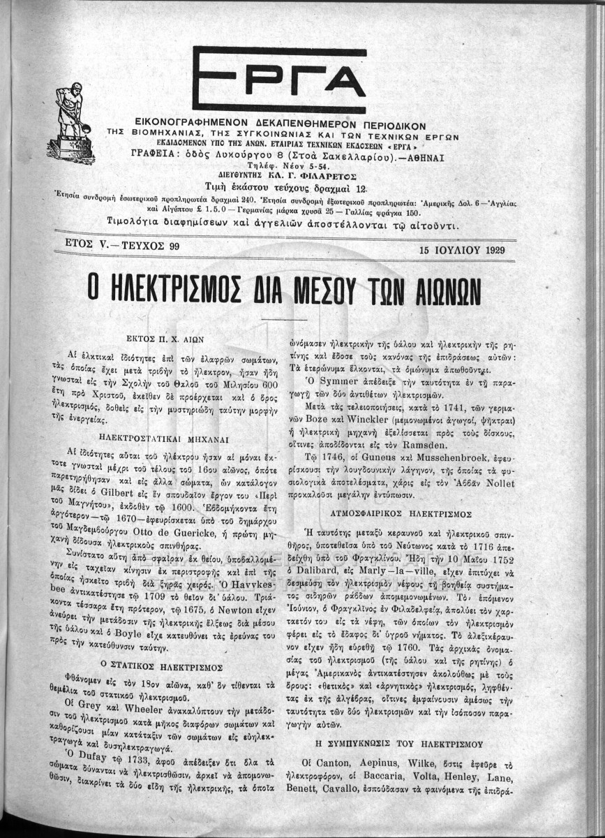 [File] GRGSA-ILE_ADM007.01.F000001 File #001 [1925 - 1931] Contents: Περιοδικό "Έργα". Περιδικό "Έργα". |