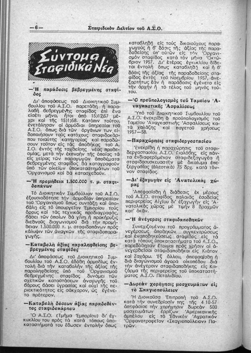Περιεχόμενα: Σταφιδικό δελτίο.
