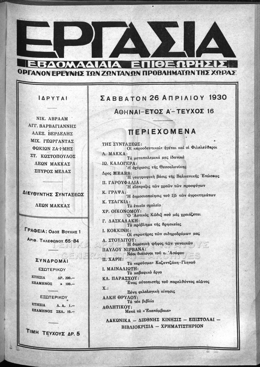 [Fichier] GRGSA-ILE_ADM007.01.F000004 Fichier #004 - ΙΝΣΤΙΤΟΥΤΟ ΣΤΑΦΙΔΑΣ / ΠΕΡΙΟΔΙΚΟ ΕΡΓΑΣΙΑ [1930 - 1931] Contenu: Περιοδικό "Εργασία". |