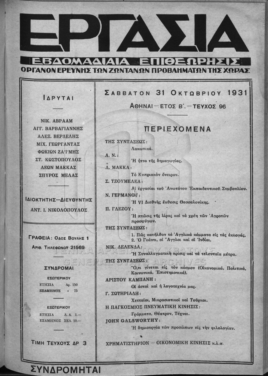 File #004 - ΙΝΣΤΙΤΟΥΤΟ ΣΤΑΦΙΔΑΣ / ΠΕΡΙΟΔΙΚΟ ΕΡΓΑΣΙΑ  [1930 - 1931]