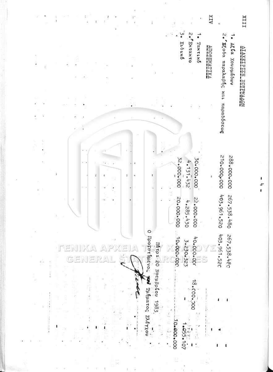 Περιεχόμενα: Πεπραγμένα. Προϋπολογισμός. Ισολογισμός. Απολογισμός. Απολ. έκθεση σταφ. χρ. Έκθεση προϋπολογισμού. Απολογισμοί προγρ. Π...