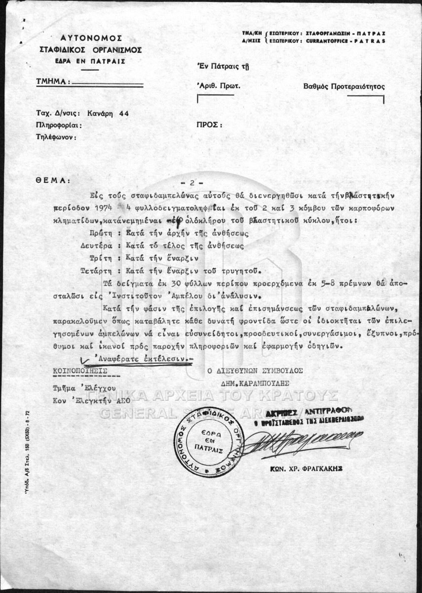 Φάκελος #009 - ΙΝΣΤΙΤΟΥΤΟ ΣΤΑΦΙΔΑΣ / ΕΚΘΕΣΕΙΣ ΠΕΠΡΑΓΜΕΝΑ  [1930 - 1986]