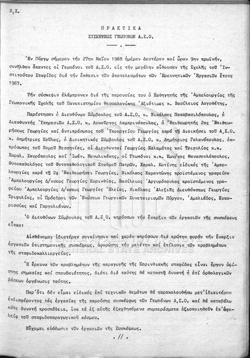 Subfile #033 - ΙΝΣΤΙΤΟΥΤΟ ΣΤΑΦΙΔΑΣ / ΕΚΘΕΣΕΙΣ ΠΕΠΡΑΓΜΕΝΑ Δ΄  [1968]
