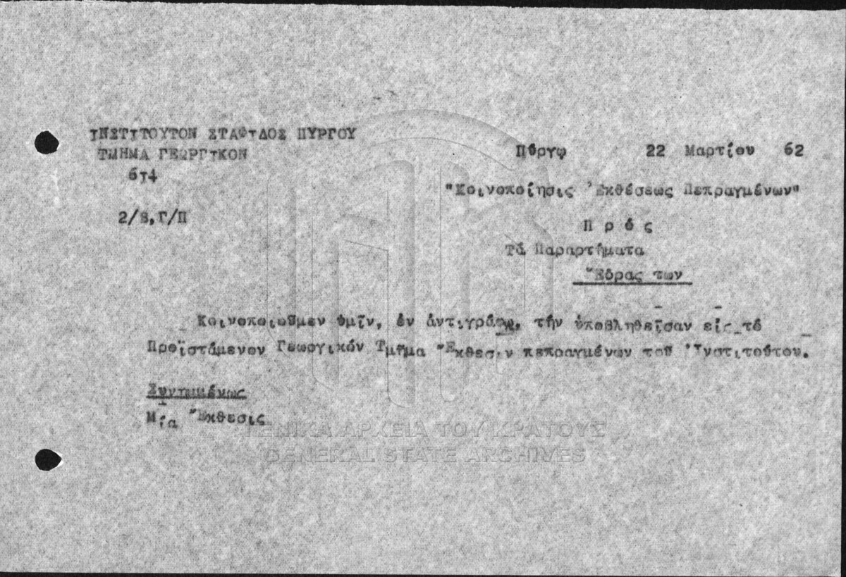 [Fonds] GRGSA-ILE_ADM007 ΙΝΣΤΙΤΟΥΤΟ ΣΤΑΦΙΔΑΣ / ΠΕΡΙΟΔΙΚΟ ΕΡΓΑ [1908 - 1992] Contents: |