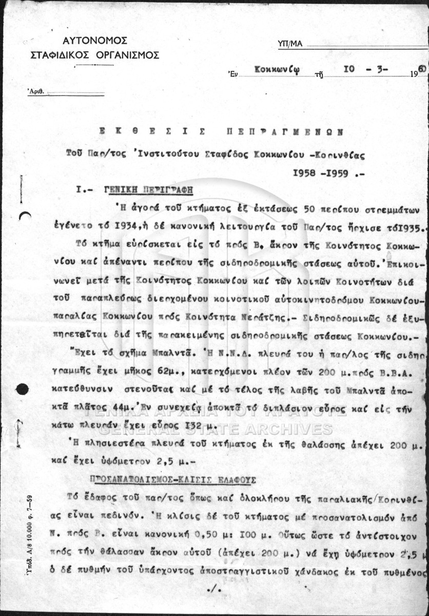 File #009 - ΙΝΣΤΙΤΟΥΤΟ ΣΤΑΦΙΔΑΣ / ΕΚΘΕΣΕΙΣ ΠΕΠΡΑΓΜΕΝΑ  [1930 - 1986]