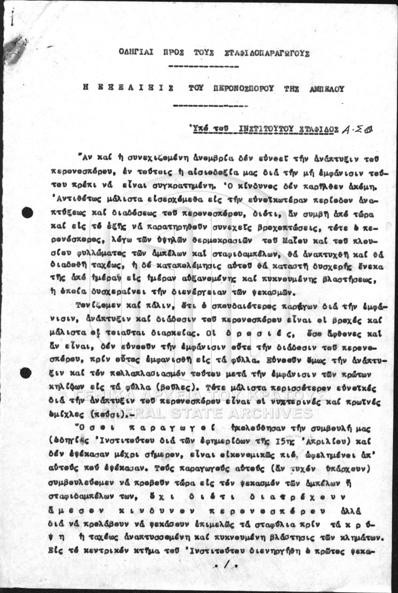 File #009 - ΙΝΣΤΙΤΟΥΤΟ ΣΤΑΦΙΔΑΣ / ΕΚΘΕΣΕΙΣ ΠΕΠΡΑΓΜΕΝΑ  [1930 - 1986]