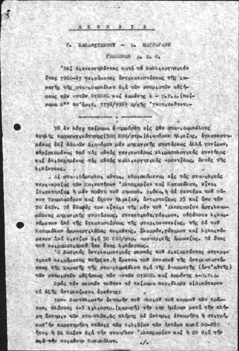 Subfile #038 - ΙΝΣΤΙΤΟΥΤΟ ΣΤΑΦΙΔΑΣ / ΕΚΘΕΣΕΙΣ ΠΕΠΡΑΓΜΕΝΑ Δ΄  [1962]
