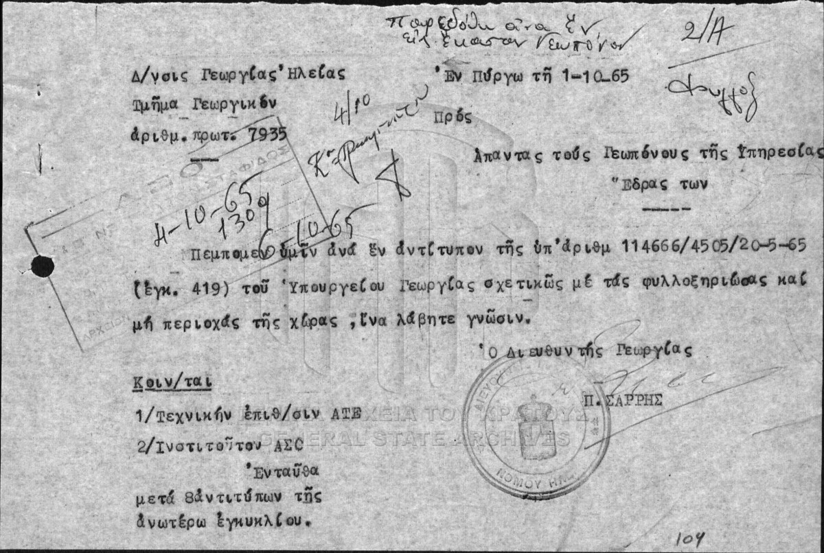 File #010 - ΙΝΣΤΙΤΟΥΤΟ ΣΤΑΦΙΔΑΣ / ΕΚΘΕΣΕΙΣ ΠΕΙΡΑΜΑΤΑ  [1937 - 1969]