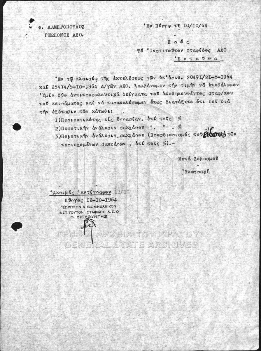 Fichier #010 - ΙΝΣΤΙΤΟΥΤΟ ΣΤΑΦΙΔΑΣ / ΕΚΘΕΣΕΙΣ ΠΕΙΡΑΜΑΤΑ  [1937 - 1969]