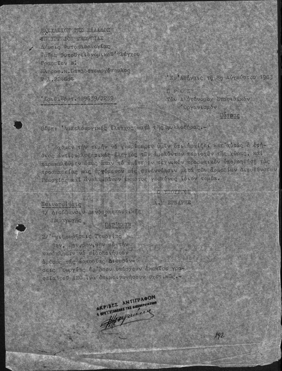 Υποφάκελος #005 - ΙΝΣΤΙΤΟΥΤΟ ΣΤΑΦΙΔΑΣ / ΕΚΘΕΣΕΙΣ ΠΕΙΡΑΜΑΤΑ  [1958 - 1967]