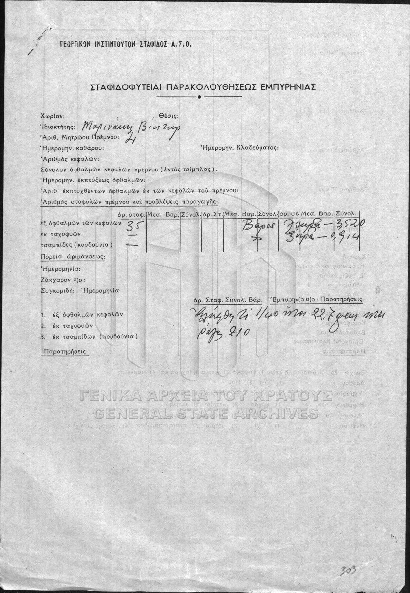 Υποφάκελος #017 - ΙΝΣΤΙΤΟΥΤΟ ΣΤΑΦΙΔΑΣ / ΠΑΡΑΚΟΛΟΥΗΣΗ ΕΜΠΥΡΗΝΕΙΑΣ ΣΕ ΣΤΑΦΙΔΟΦΥΤ.  [1938]