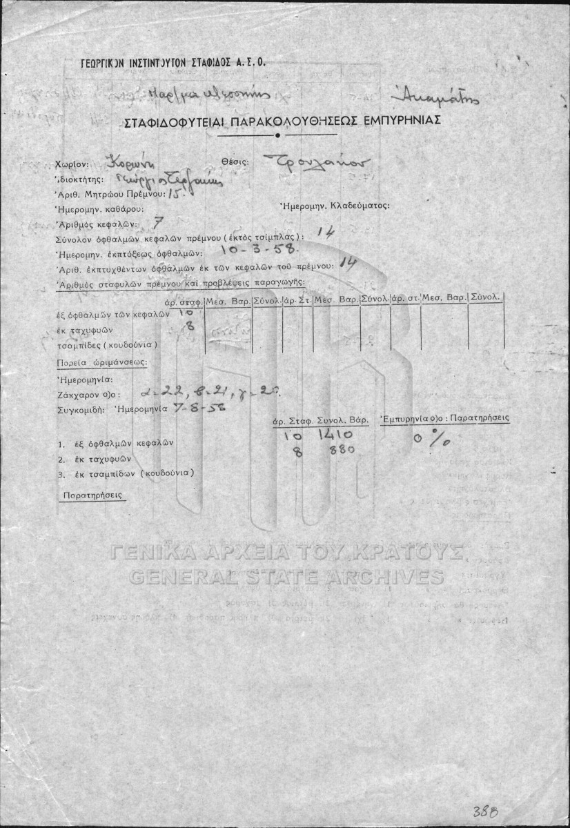 Subfile #017 - ΙΝΣΤΙΤΟΥΤΟ ΣΤΑΦΙΔΑΣ / ΠΑΡΑΚΟΛΟΥΗΣΗ ΕΜΠΥΡΗΝΕΙΑΣ ΣΕ ΣΤΑΦΙΔΟΦΥΤ.  [1938]