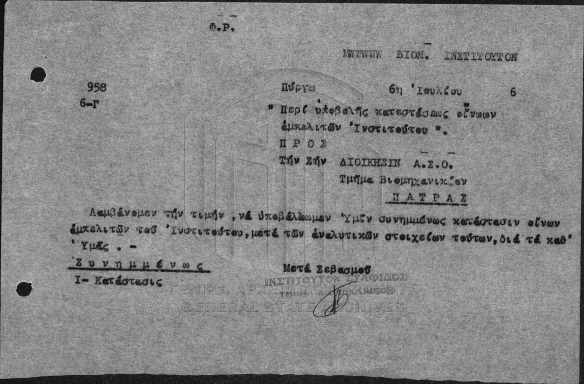 Φάκελος #011 - ΙΝΣΤΙΤΟΥΤΟ ΣΤΑΦΙΔΑΣ / ΓΕΝΙΚΟ ΑΡΧΕΙΟ  [1955 - 1960]