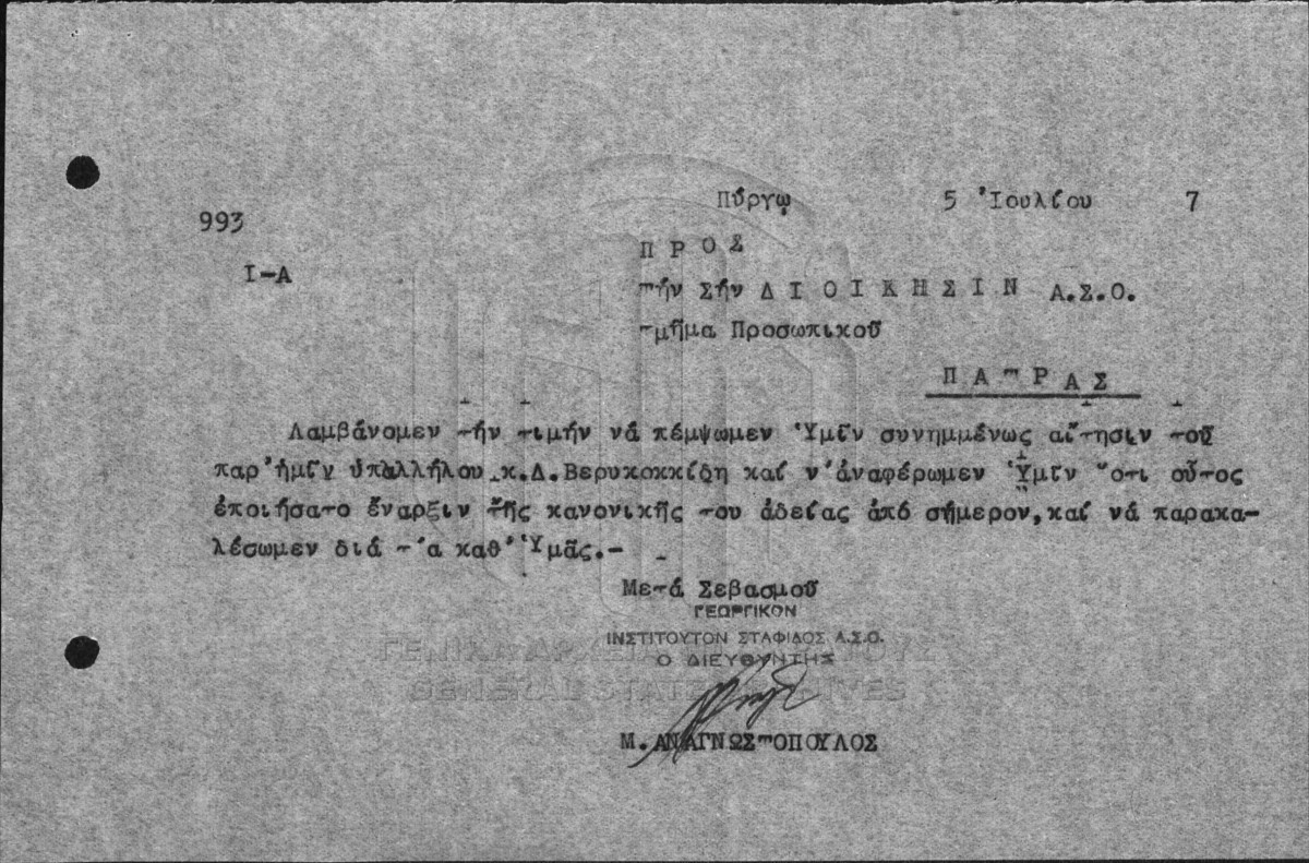 Fichier #011 - ΙΝΣΤΙΤΟΥΤΟ ΣΤΑΦΙΔΑΣ / ΓΕΝΙΚΟ ΑΡΧΕΙΟ  [1955 - 1960]