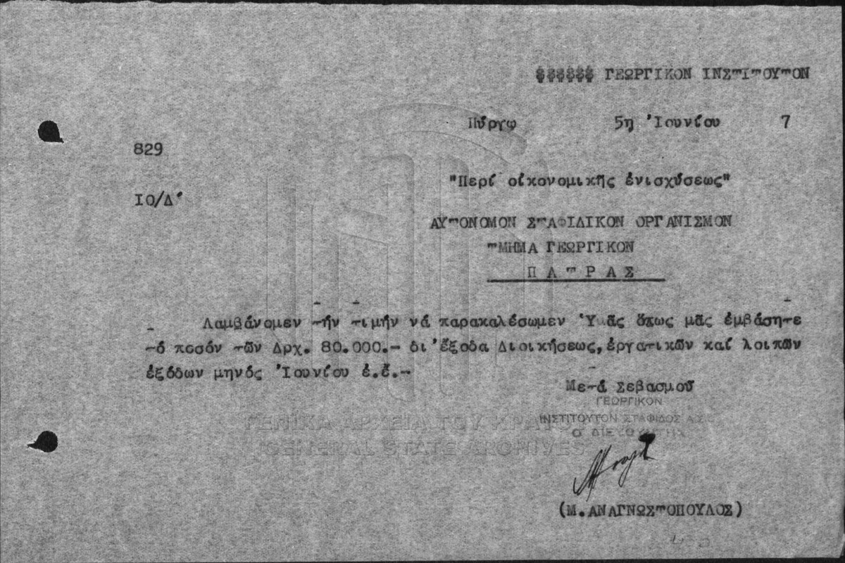 File #011 - ΙΝΣΤΙΤΟΥΤΟ ΣΤΑΦΙΔΑΣ / ΓΕΝΙΚΟ ΑΡΧΕΙΟ  [1955 - 1960]
