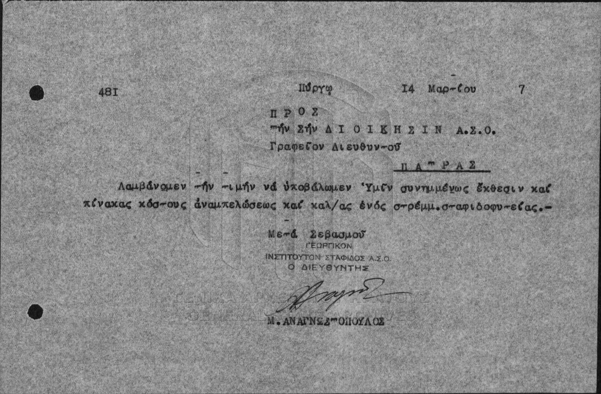 File #011 - ΙΝΣΤΙΤΟΥΤΟ ΣΤΑΦΙΔΑΣ / ΓΕΝΙΚΟ ΑΡΧΕΙΟ  [1955 - 1960]