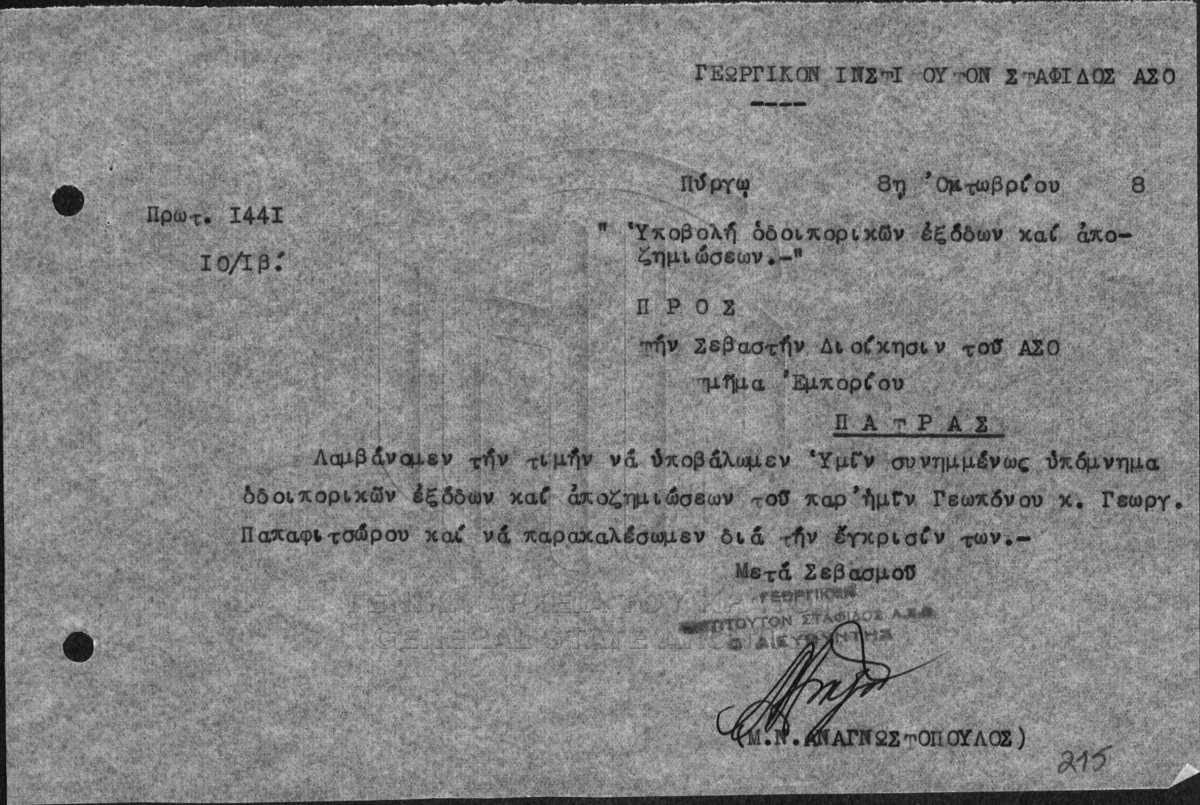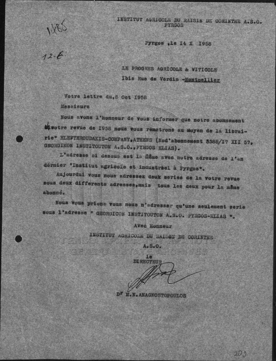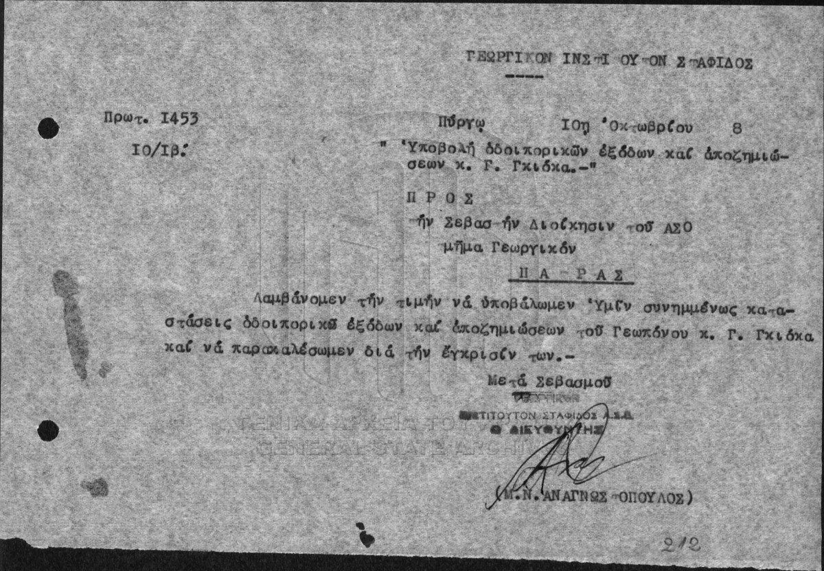 Subfile #004 - ΙΝΣΤΙΤΟΥΤΟ ΣΤΑΦΙΔΑΣ / ΓΕΝΙΚΟ ΑΡΧΕΙΟ  [1959]