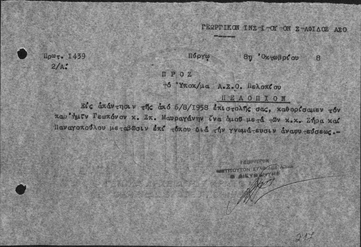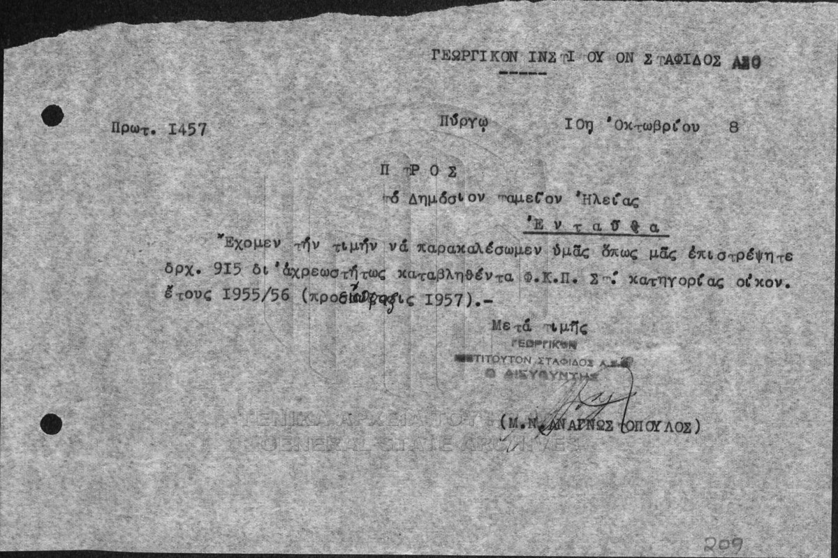 File #011 - ΙΝΣΤΙΤΟΥΤΟ ΣΤΑΦΙΔΑΣ / ΓΕΝΙΚΟ ΑΡΧΕΙΟ  [1955 - 1960]