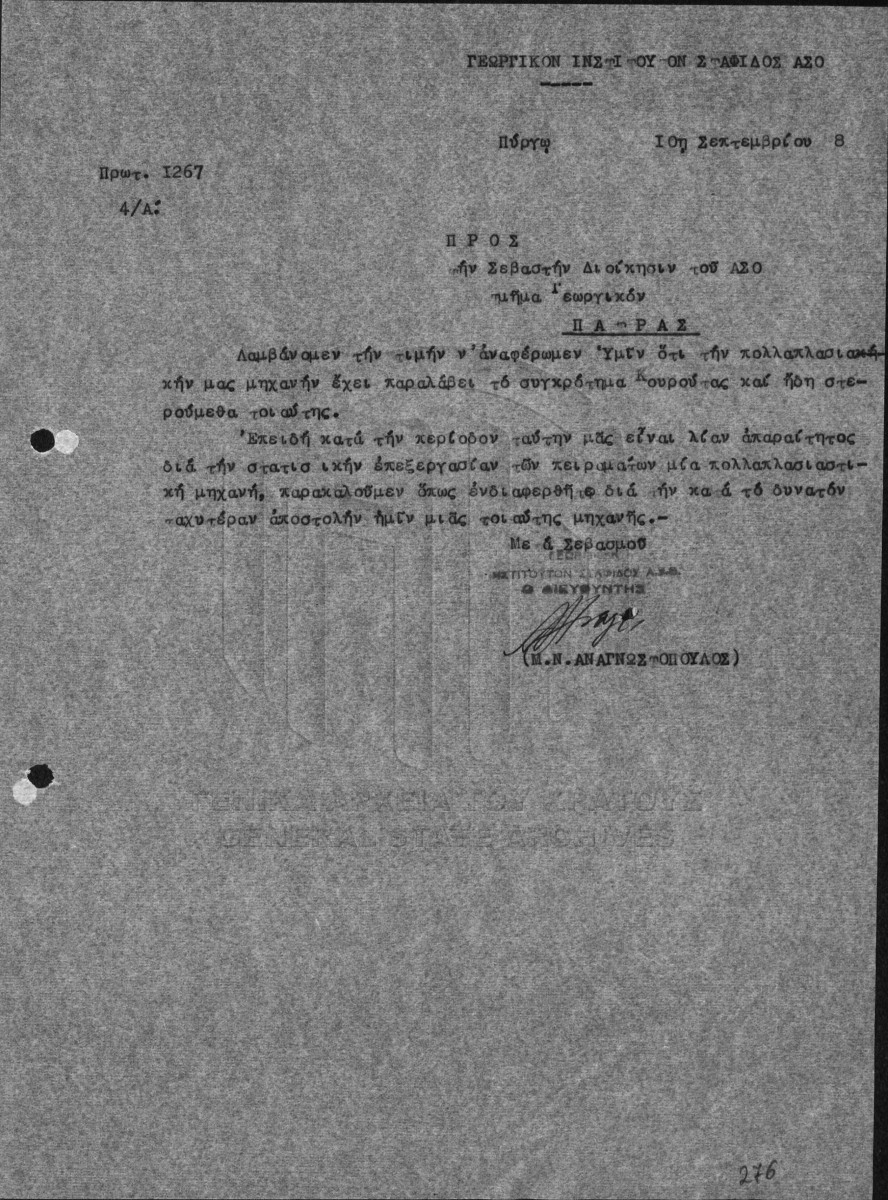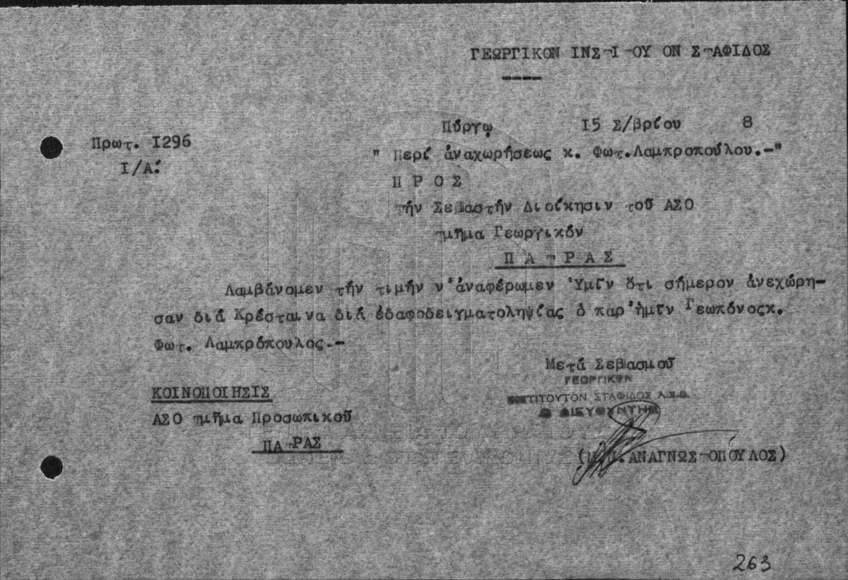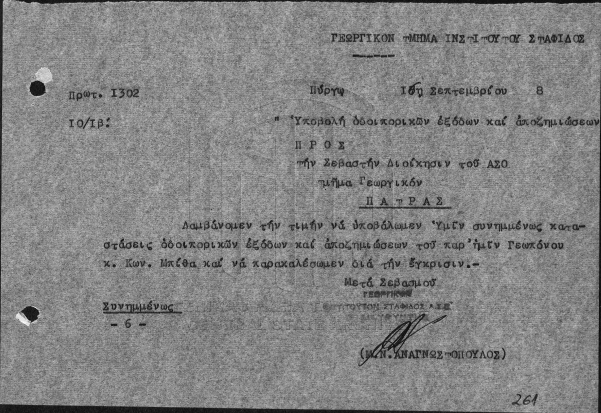 Υποφάκελος #004 - ΙΝΣΤΙΤΟΥΤΟ ΣΤΑΦΙΔΑΣ / ΓΕΝΙΚΟ ΑΡΧΕΙΟ  [1959]