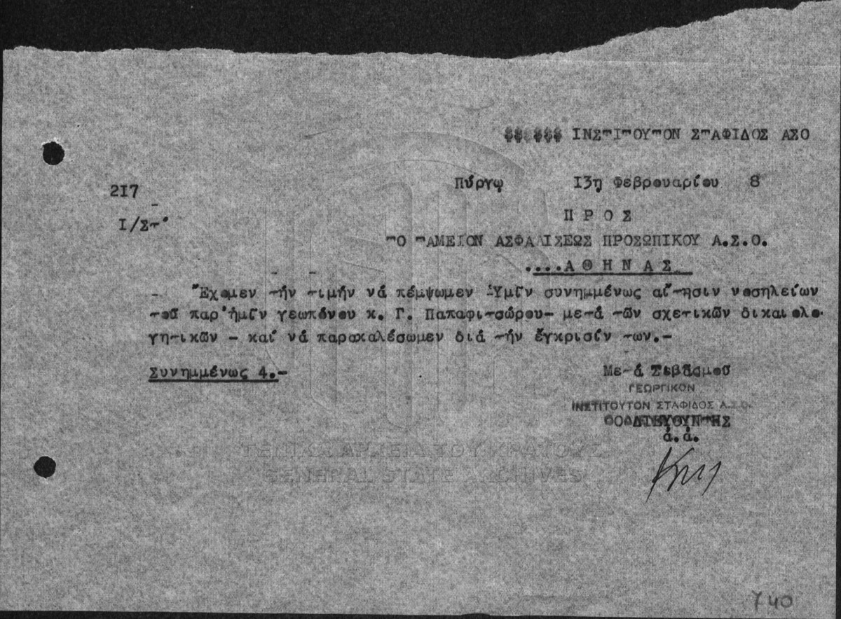 Υποφάκελος #004 - ΙΝΣΤΙΤΟΥΤΟ ΣΤΑΦΙΔΑΣ / ΓΕΝΙΚΟ ΑΡΧΕΙΟ  [1959]