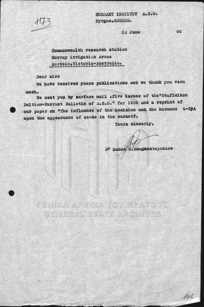 Φάκελος #011 - ΙΝΣΤΙΤΟΥΤΟ ΣΤΑΦΙΔΑΣ / ΓΕΝΙΚΟ ΑΡΧΕΙΟ  [1955 - 1960]