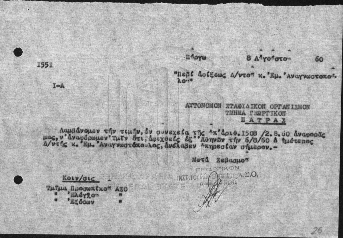 Υποφάκελος #005 - ΙΝΣΤΙΤΟΥΤΟ ΣΤΑΦΙΔΑΣ / ΑΡΧΕΙΟ 1960  [1960]