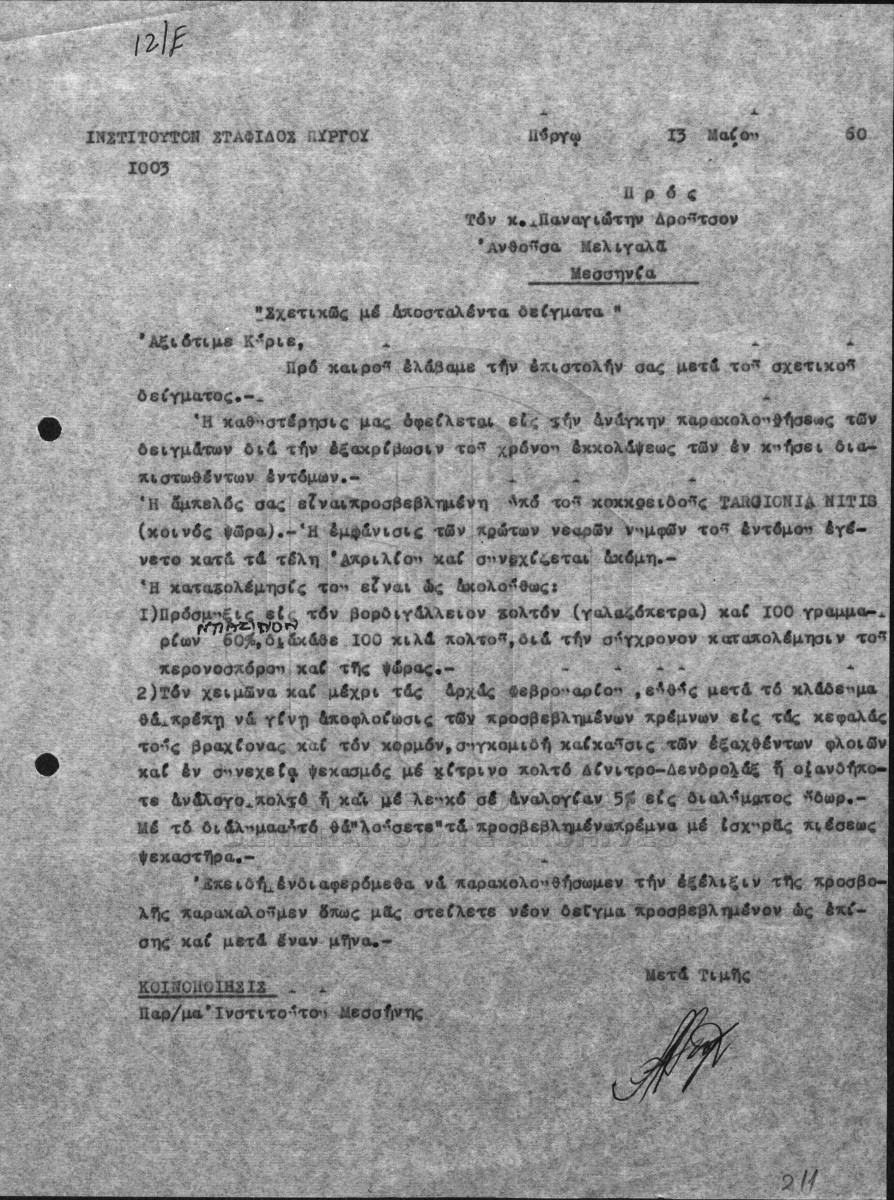 Subfile #005 - ΙΝΣΤΙΤΟΥΤΟ ΣΤΑΦΙΔΑΣ / ΑΡΧΕΙΟ 1960  [1960]