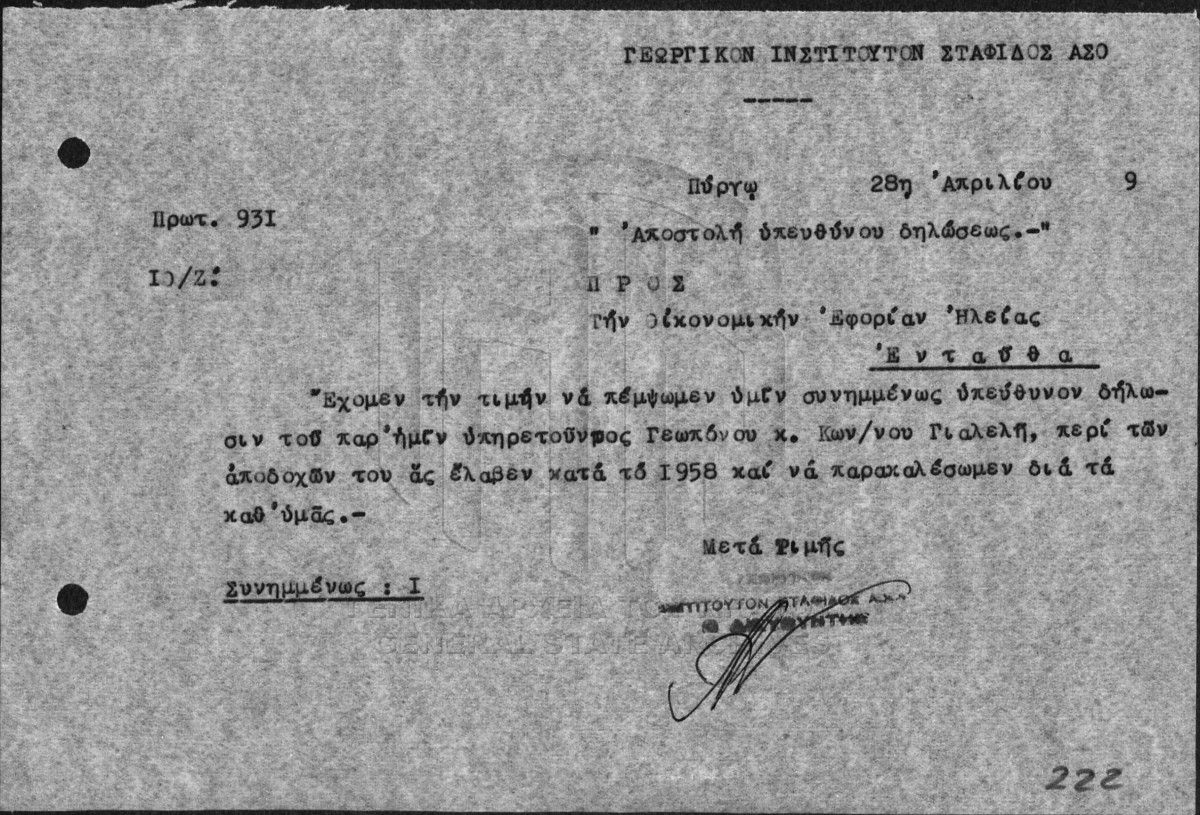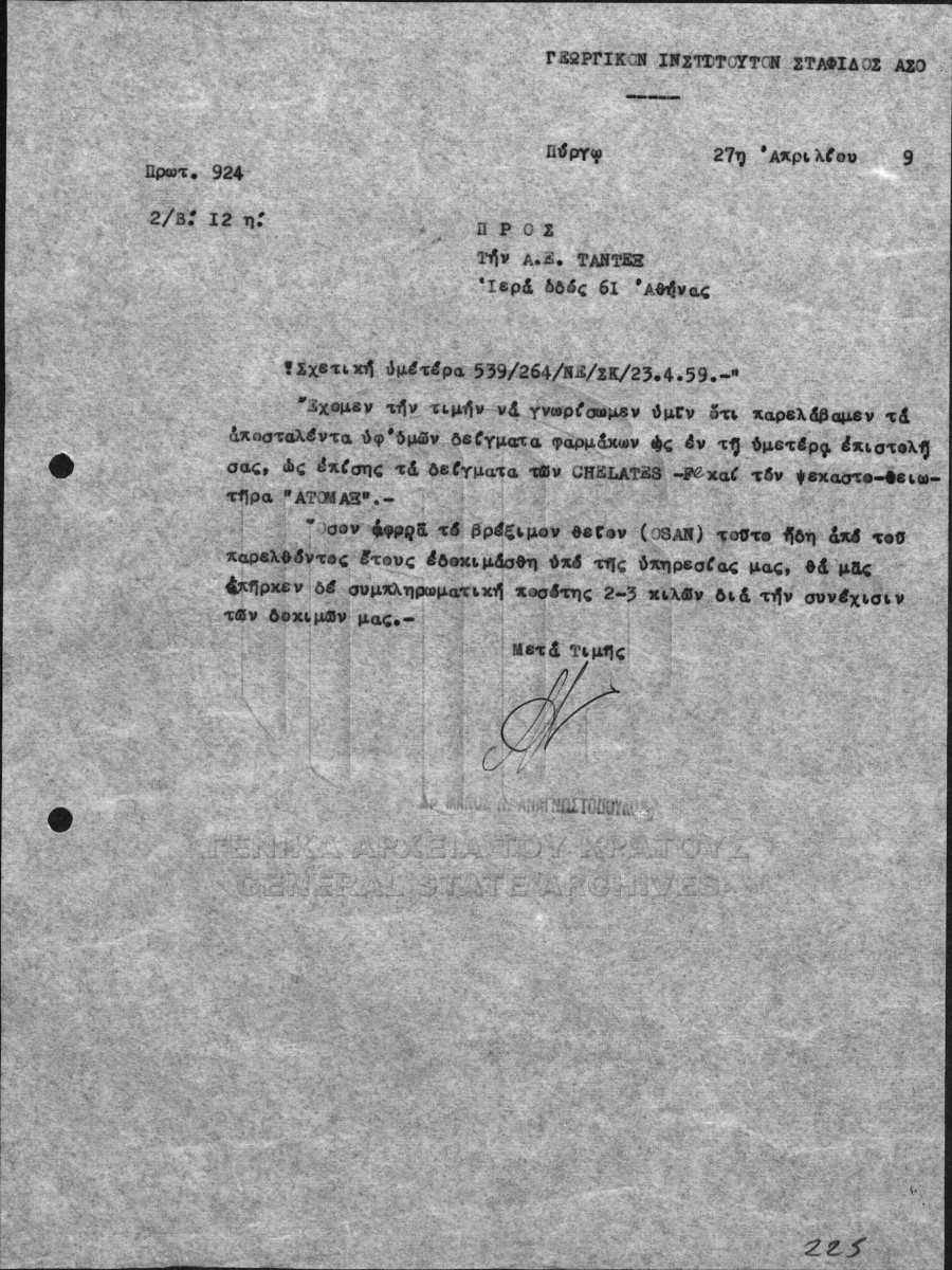 [Subfile] GRGSA-ILE_ADM007.01.F00011.SF0006 Subfile #006 - ΙΝΣΤΙΤΟΥΤΟ ΣΤΑΦΙΔΑΣ / ΓΕΝΙΚΟ ΑΡΧΕΙΟ [1959] Φάκελος εξερχ. συγ/μάτων. |