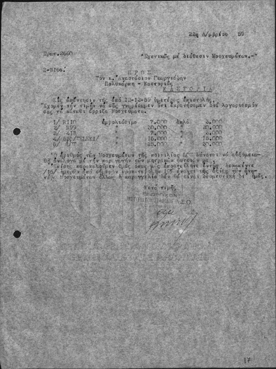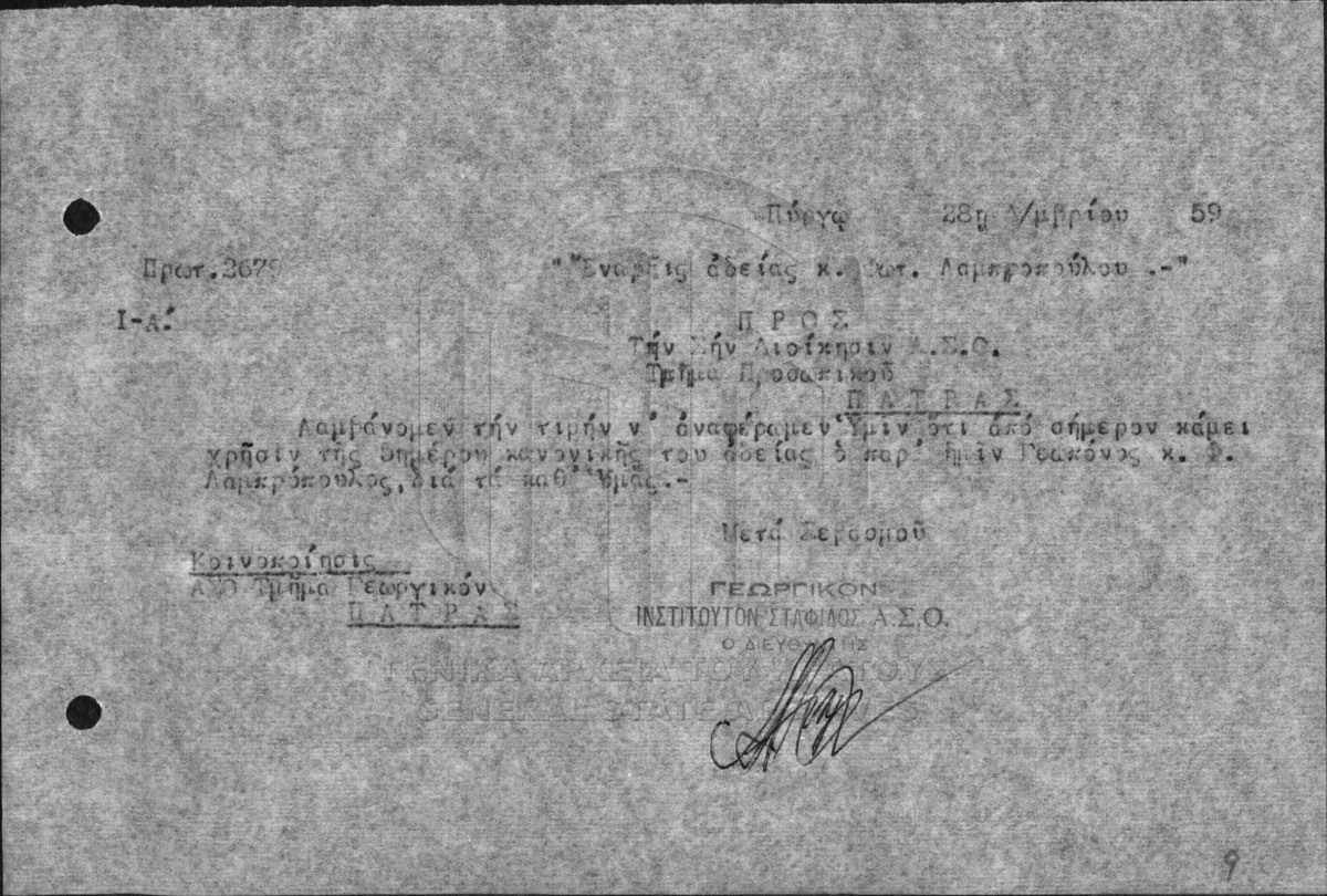 Υποφάκελος #006 - ΙΝΣΤΙΤΟΥΤΟ ΣΤΑΦΙΔΑΣ / ΓΕΝΙΚΟ ΑΡΧΕΙΟ  [1959]