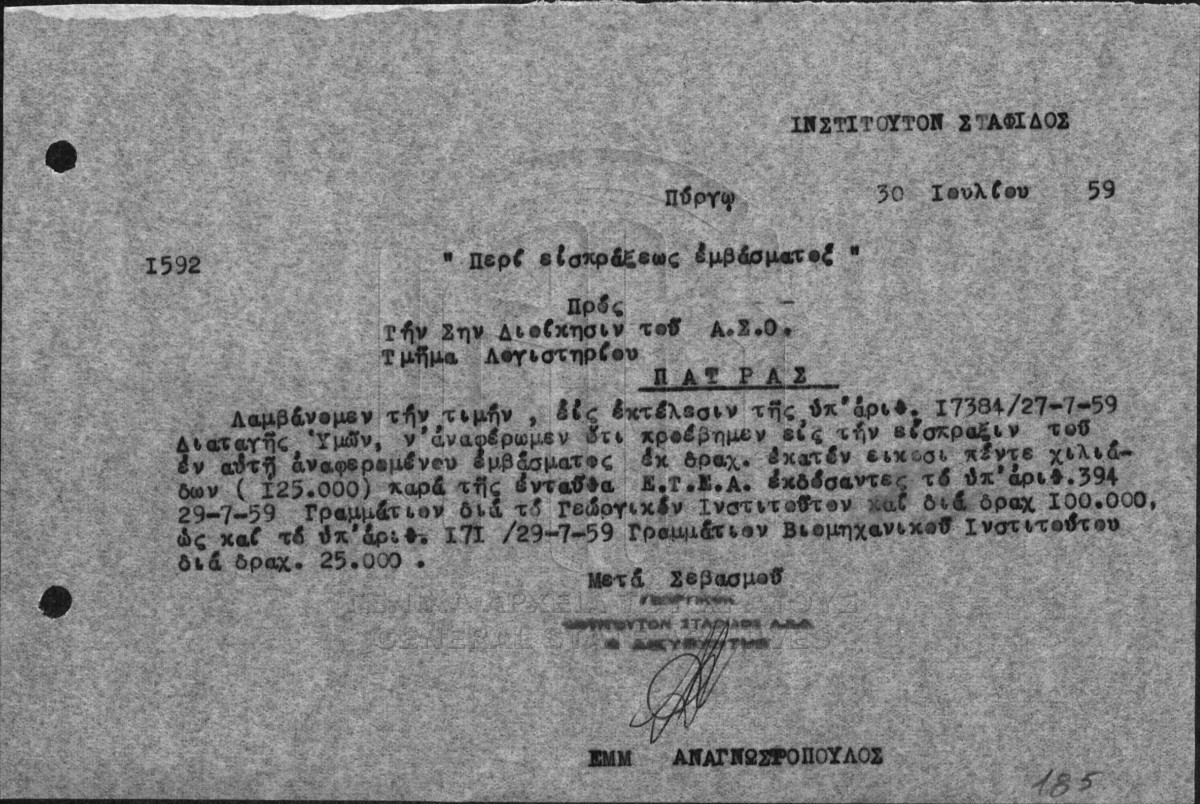 Subfile #006 - ΙΝΣΤΙΤΟΥΤΟ ΣΤΑΦΙΔΑΣ / ΓΕΝΙΚΟ ΑΡΧΕΙΟ  [1959]