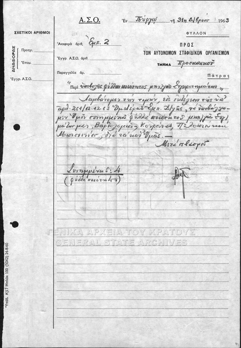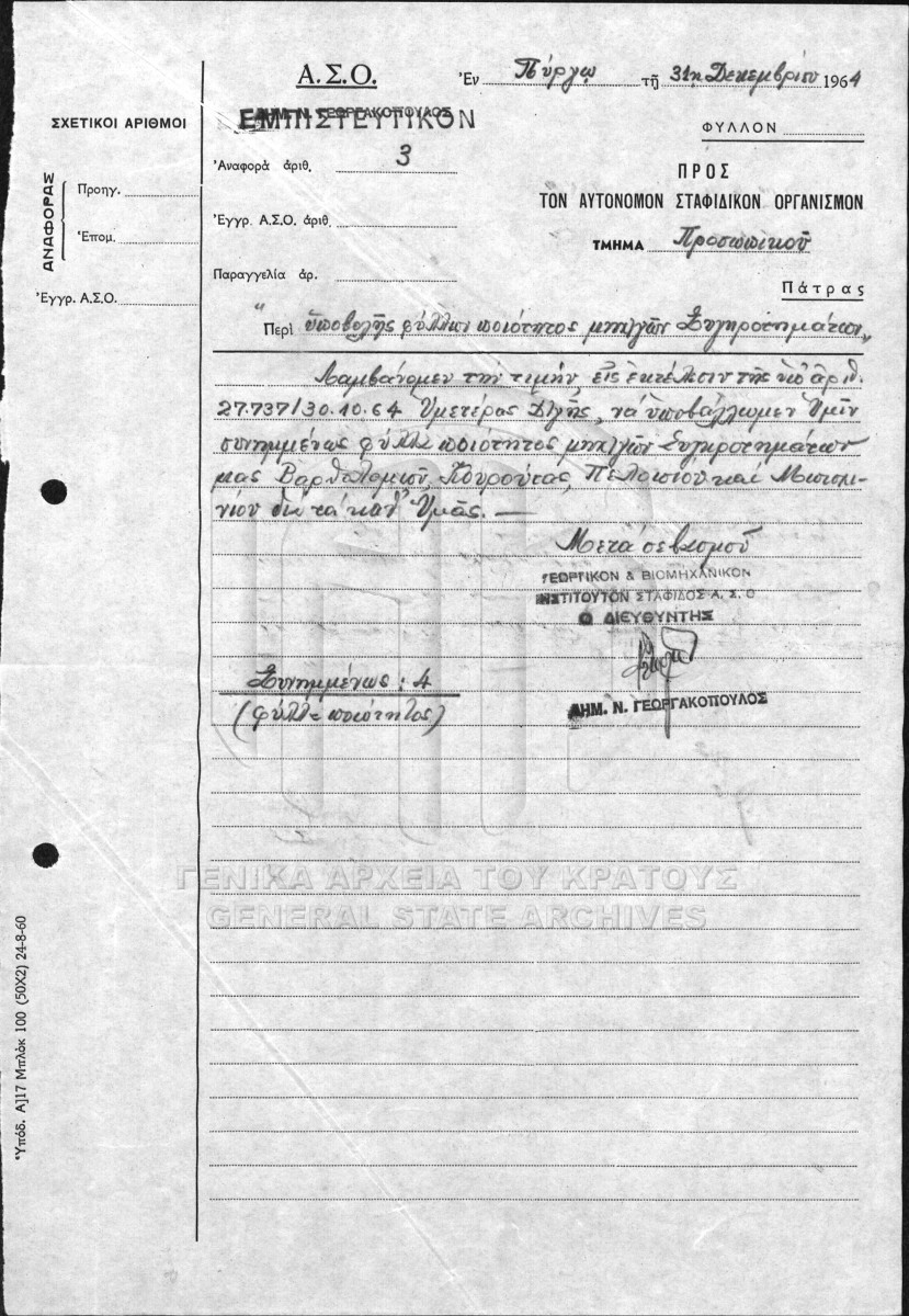 Subfile #001 - ΙΝΣΤΙΤΟΥΤΟ ΣΤΑΦΙΔΑΣ / ΕΜΠΙΣΤΕΥΤΙΚΟΣ ΦΑΚΕΛΟΣ  [1956 - 1966]