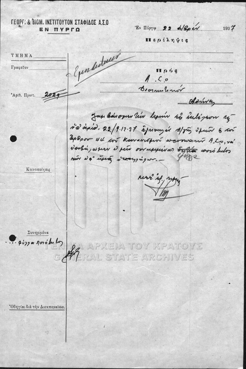 [Fonds] GRGSA-ILE_ADM007 ΙΝΣΤΙΤΟΥΤΟ ΣΤΑΦΙΔΑΣ / ΠΕΡΙΟΔΙΚΟ ΕΡΓΑ [1908 - 1992] Contents: |