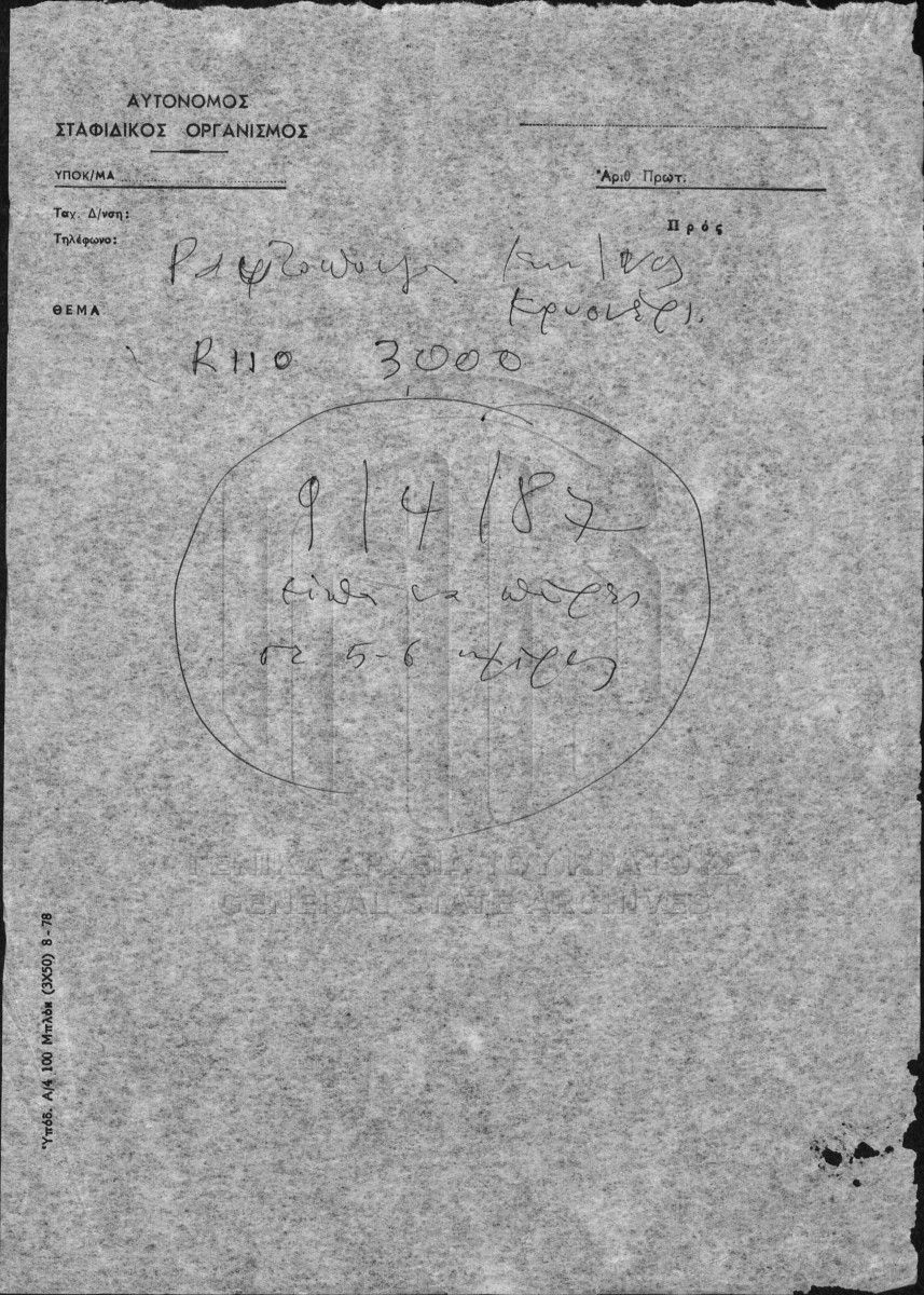 Υποφάκελος #017 - ΙΝΣΤΙΤΟΥΤΟ ΣΤΑΦΙΔΑΣ / ΑΝΑΜΠΕΛΩΣΕΙΣ, ΕΡΡΙΖΑ - ΑΡΡΙΖΑ ΜΟΣΧΕΥΜΑΤΑ  [1986]