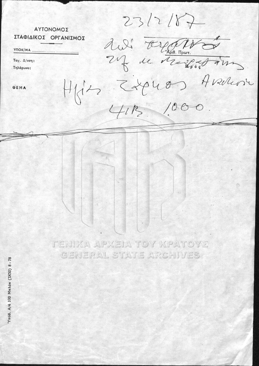Φάκελος #014 - ΙΝΣΤΙΤΟΥΤΟ ΣΤΑΦΙΔΑΣ / ΑΝΑΜΠΕΛΩΣΕΙΣ, ΕΡΡΙΖΑ - ΑΡΡΙΖΑ ΜΟΣΧΕΥΜΑΤΑ  [1960 - 1991]