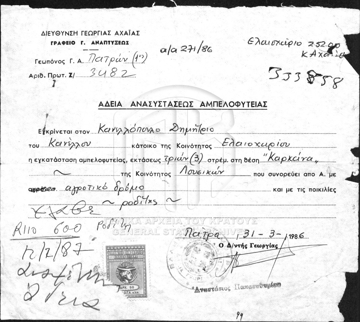 Subfile #019 - ΙΝΣΤΙΤΟΥΤΟ ΣΤΑΦΙΔΑΣ / ΑΝΑΜΠΕΛΩΣΕΙΣ, ΕΡΡΙΖΑ - ΑΡΡΙΖΑ ΜΟΣΧΕΥΜΑΤΑ  [1987]