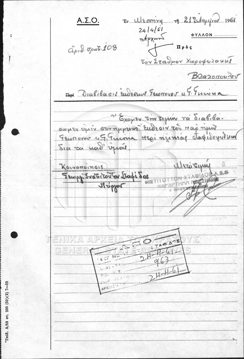 Subfile #008 - ΙΝΣΤΙΤΟΥΤΟ ΣΤΑΦΙΔΑΣ / ΦΑΚΕΛΟΣ ΜΕΣΣΗΝΗΣ  [1962]