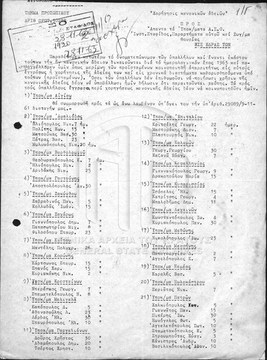 [Subfile] GRGSA-ILE_ADM007.01.F000017.SF0001 Subfile #001 - ΙΝΣΤΙΤΟΥΤΟ ΣΤΑΦΙΔΑΣ / ΓΕΝΙΚΟΣ ΦΑΚΕΛΟΣ ΥΠΑΛΛΗΛΩΝ [1961 - 1967] Γενικός φάκελος υπαλλήλων. |