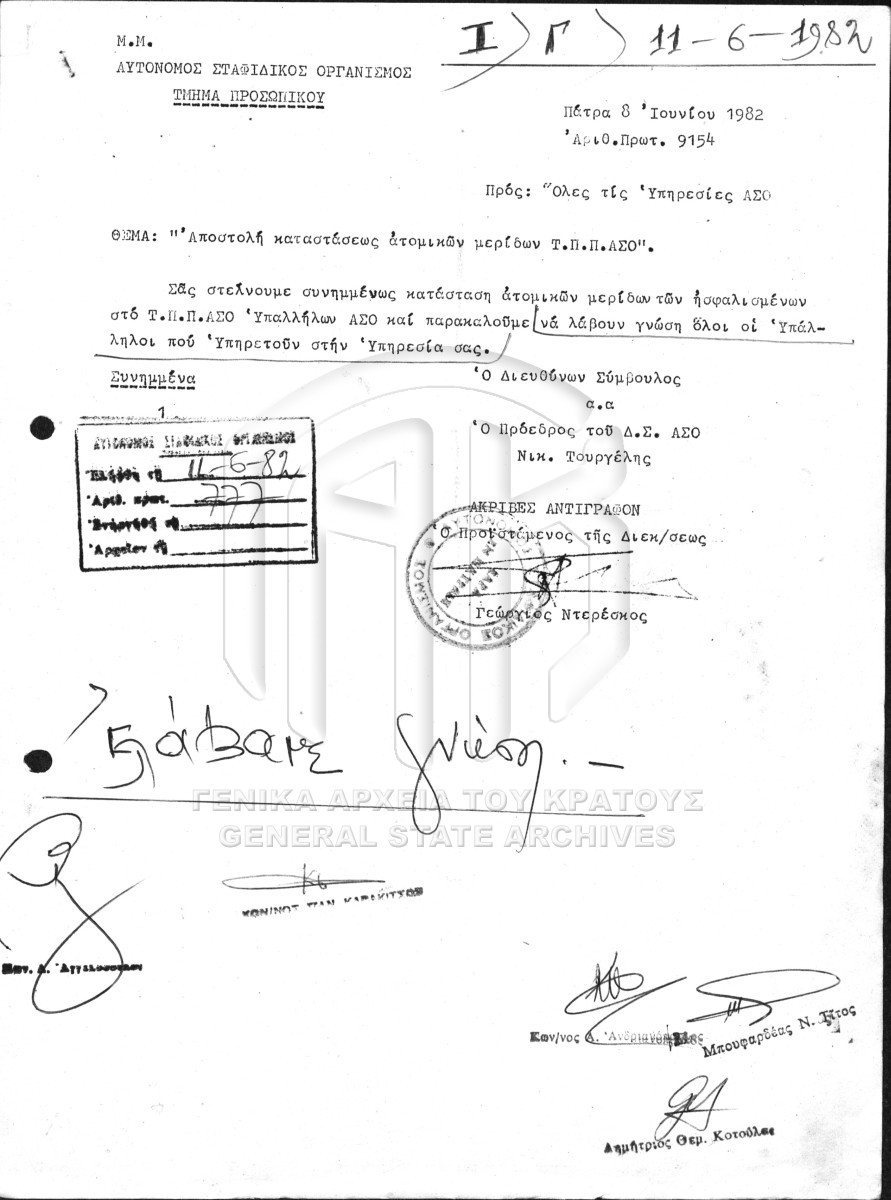 Subfile #006 - ΙΝΣΤΙΤΟΥΤΟ ΣΤΑΦΙΔΑΣ / ΓΕΝΙΚΟΣ ΦΑΚΕΛΟΣ ΥΠΑΛΛΗΛΩΝ  [1979 - 1983]