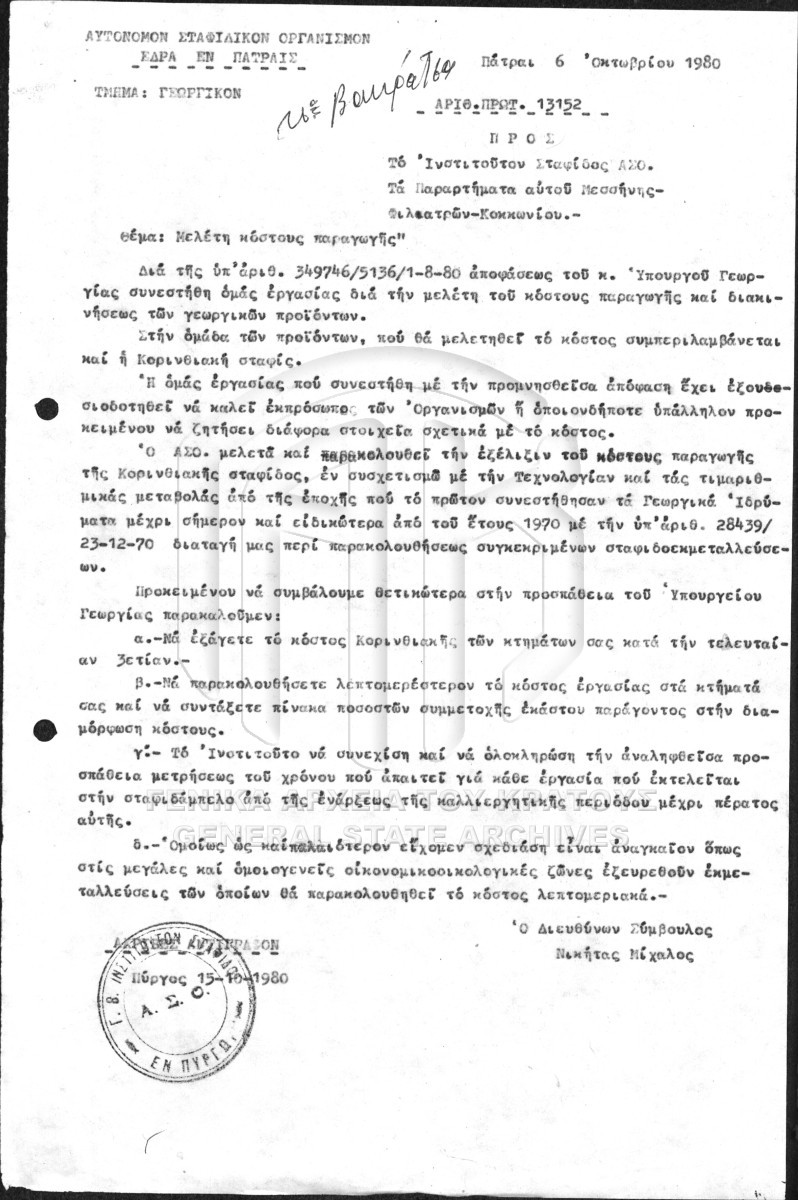 Εκθέσεις, πρακτικά και άλλα έγργραφα του Ινστιτούτου Σταφίδας.