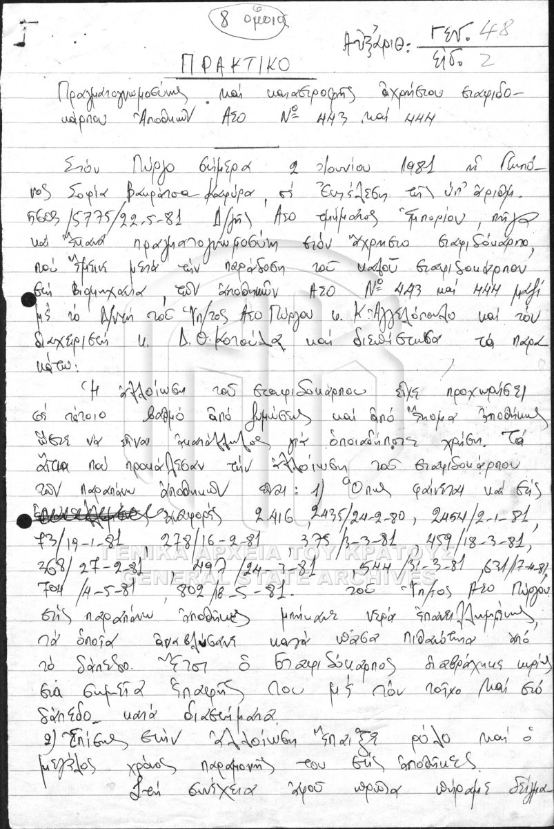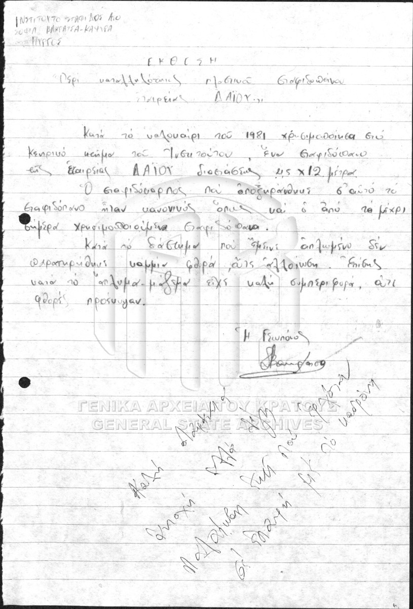 Εκθέσεις, πρακτικά και άλλα έγργραφα του Ινστιτούτου Σταφίδας.